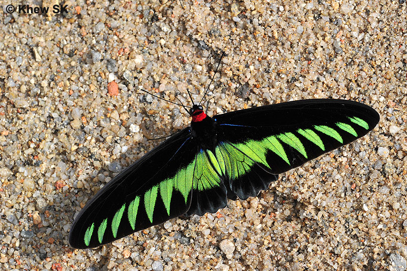 But the subject of this blog article is our second day's trip to the Kuala Woh Recreational Forest Park. Having been there many decades back as a school kid with my mentor, I had fond memories of Kuala Woh, where I had collected many species that I had not encountered before. But amongst my most memorable encounters was with the black and emerald Rajah Brooke's Birdwing (Trogonoptera brookiana albescens).